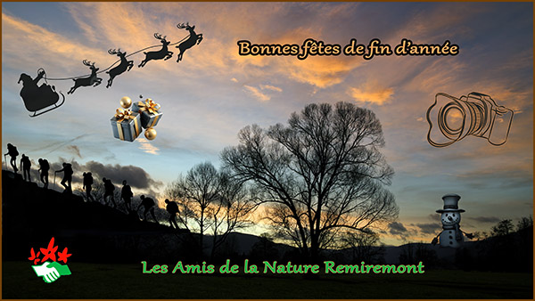 Les Amis de la Nature de Remiremont vous adressent leurs vœux les plus chaleureux pour ces fêtes de fin d’année et se réjouissent de vous retrouver en 2026 pour vivre ensemble de nouvelles aventures.