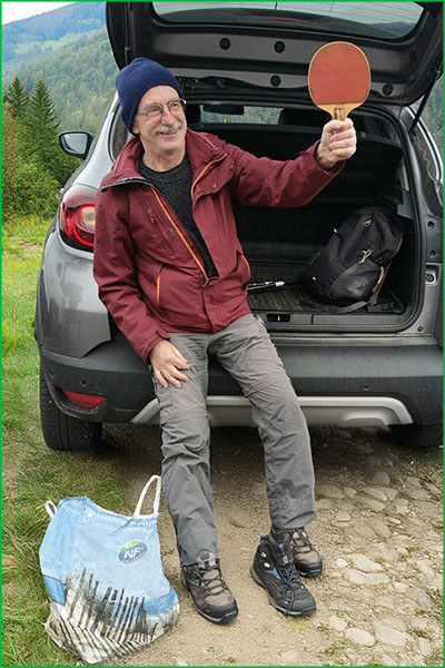 Dernière marche de l’année 2025. Heureusement, Jean‑Yves ne manque jamais d’imagination : privé de neige, il a sorti sa raquette… de ping‑pong ! De quoi affronter les sentiers avec panache et rappeler que, même sans poudreuse, on peut toujours « smatcher » une belle sortie.
